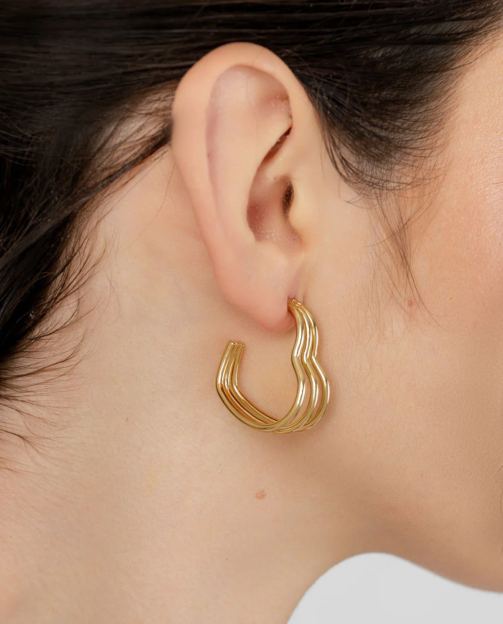 Un diseño con flow ✨ Estas argollas de corazón estilizadas están hechas de acero inoxidable y bañadas en oro, ideales para darle un toque moderno a tu brillo diario. Son parte de nuestra colección Acero: resistentes, elegantes y hechas para durar.
