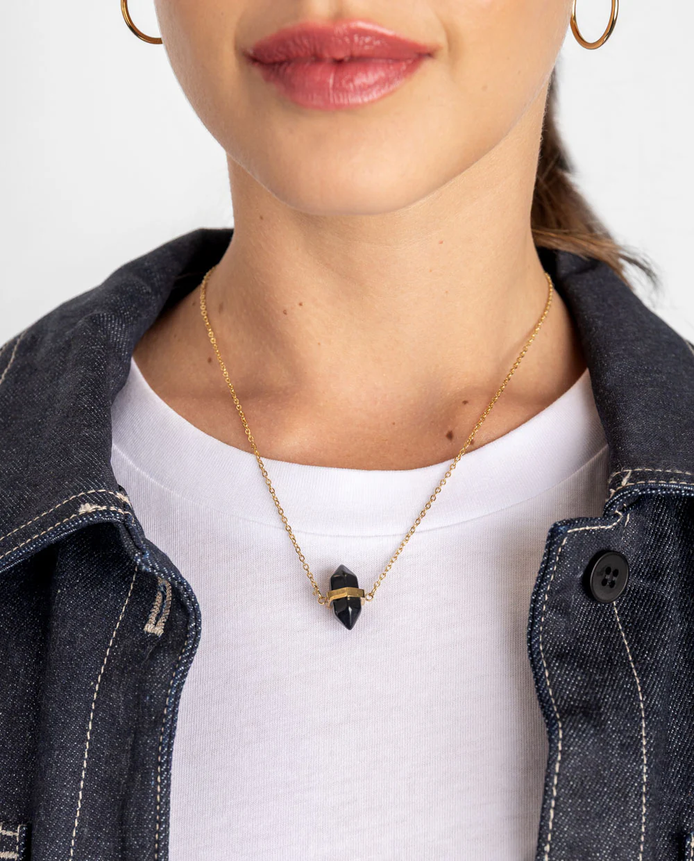 Este collar presenta una piedra natural de ónix, reconocida por su poder de protección y conexión con la fuerza interior. Su cadena de acero bañado en oro aporta durabilidad y un toque sofisticado, ideal para acompañarte con estilo y energía en tu día a día. Perfecto para usar solo o combinar.