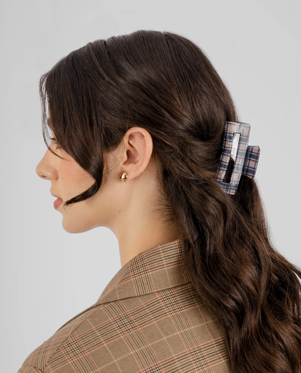 Dale un twist chic a tu peinado con este gancho en print escocés 🤎 Perfecto para estilos recogidos que necesitan practicidad sin perder el estilo. Un complemento trendy que combina con todo y eleva tu look en segundos ✨